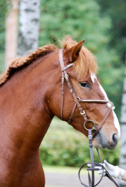 Varustaessa on helpoin, kun laitat Muiskun kiinni esimerkiksi karsinan kaltereihin, koska yleensä neidillä on tapana paeta satulaa, koska hyi yäk töitä! Kiinni laitettuna ei tamma sitten viitsikään kiukutella hyvällä hetkellä ja antaa kiristellä vyönkin ihan nätisti. Suitsia laittaessa älä kuitenkaan päästä päästä irti, koska muuten se on nostettuna niin ylös, kuin mahdollista. Jos näin sattuu vahingossa käymään, että ote päästä lipeää ja turpa tavoittelee taivaita, niin helpoin onkin laittaa naru kaulalle, koska jostain syystä se on Muiskulle sellainen, jonka kanssa se ei päätään nostele.